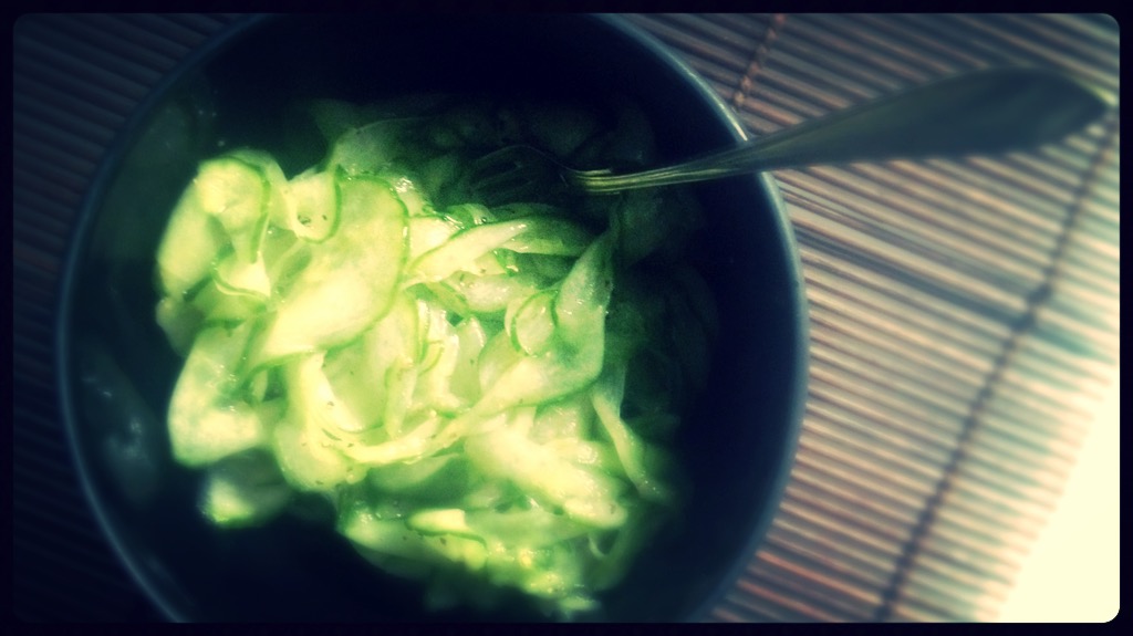 As I said above, I like to retain a bit of the ‘water’. This is what I mix the pepper, sugar and vinegar with. The advantage being that you can add as much as you like to the cucumber. Additionally, you can also experiment with garlic.