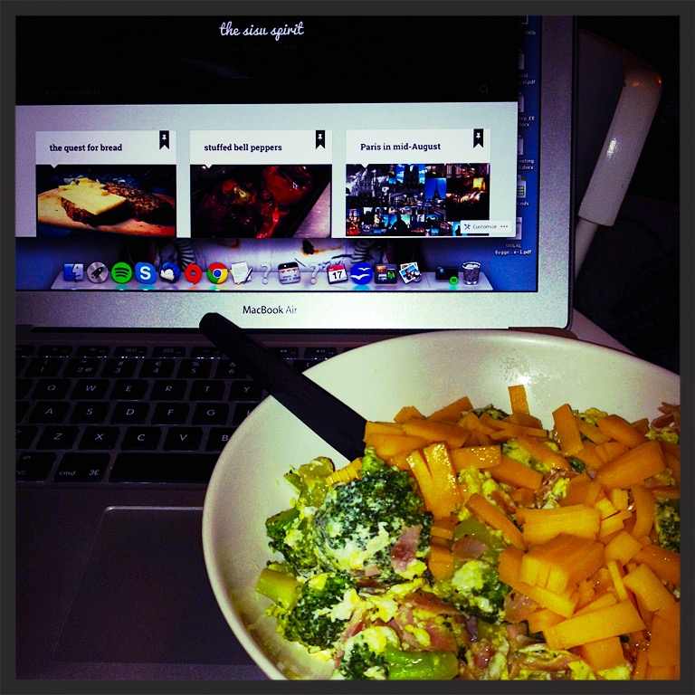 Sometimes dinner needs to be easy and quick. And what springs to mind is scrambled eggs. If you then have broccoli left over from your Thai adventures, plus a little bit of ham and cheese … dinner can be ready in under 5 minutes.