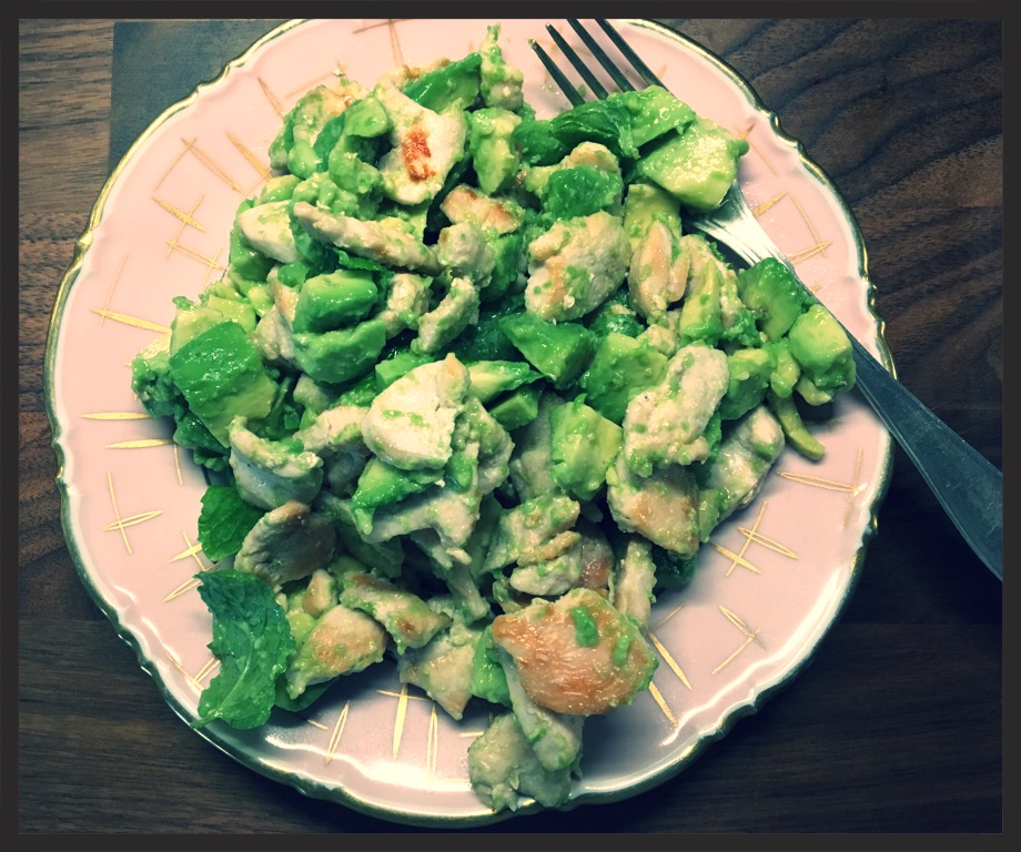 Thats basically it. Fry the chicken, clean the vegetables and cut everything into pieces. Season with olive oil, lemon juice and pepper & salt.